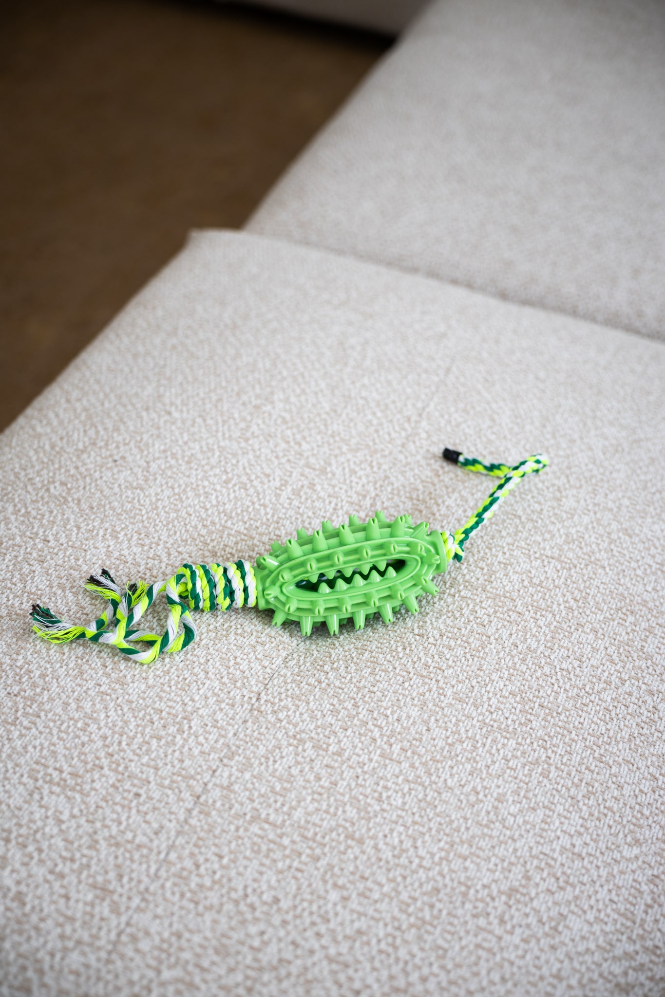 Nasza zabawka została wykonana z trwałych i wysokiej jakości materiałów, które gwarantują długotrwałe użytkowanie nawet podczas intensywnej zabawy. To solidne połączenie wytrzymałości i funkcjonalności, stworzone z myślą o potrzebach każdego pupila.